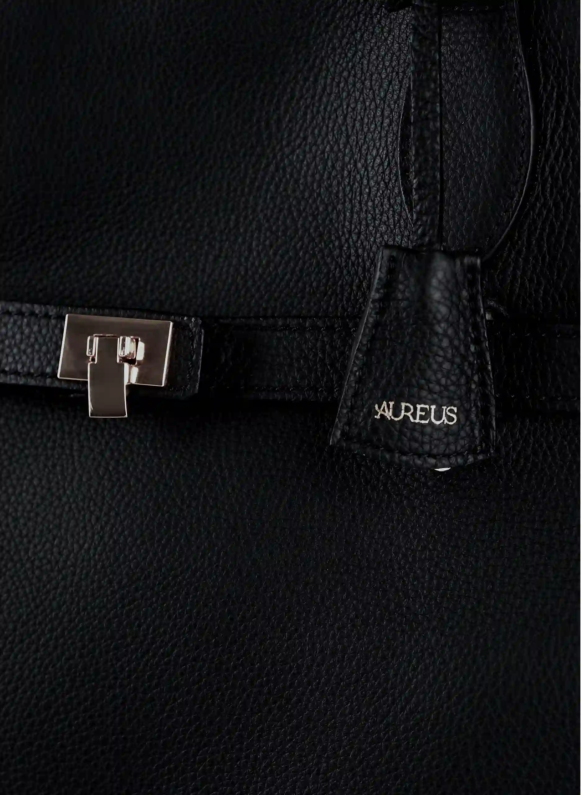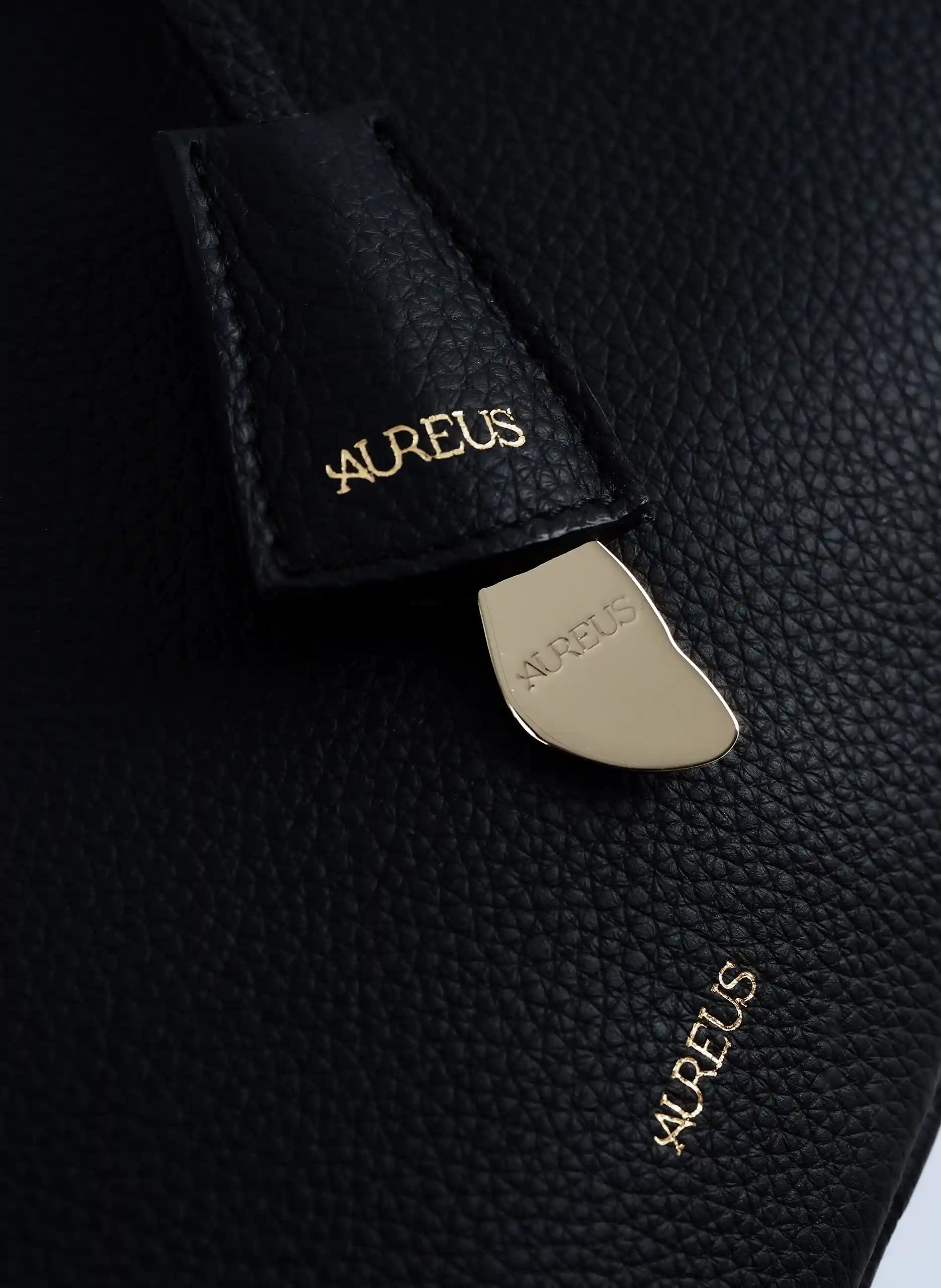 • finished with a detashable leather tag addorned with a gold-toned charm with the Aureus logo, adding a sculptured signature touch to the design